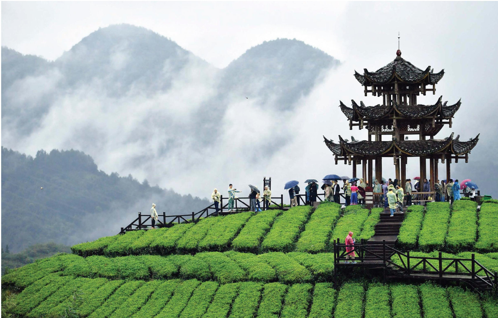 游客在宣恩县茶园沉浸式体验茶旅融合的独特魅力。(宣恩县融媒体中心供图) 2024年,宣恩县伍家台茶业集团有限公司实现销售收入4000多万元,其中1800多万元来自时尚消费市场。 九月的晨光洒在鄂西群山之间,宣恩县湖北伍家台茶业集团有限公司(以下简称“伍家台茶业”)的二期工地上,一场茶叶的现代化革命正在悄然上演。 走进建设现场,十余台大型机械和数十名工人正在进行场平和管网施工。这里正在建设