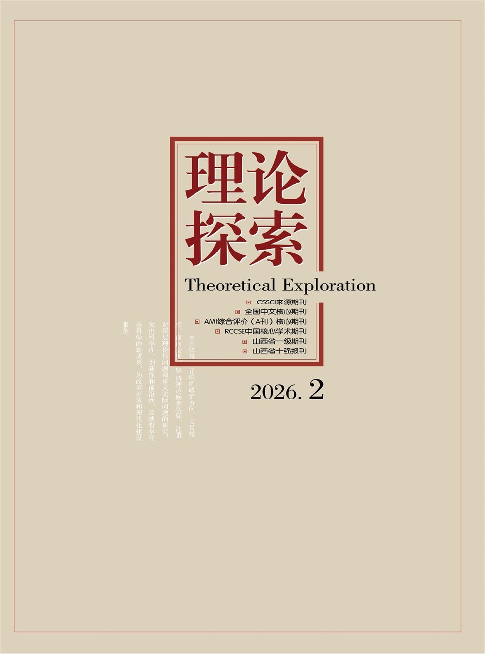 《理论探索》以马列主义、毛泽东思想和邓小平理论为指导,理论联系实际,贯彻“双百”方针,倡导对重大理论和实际问题的深入研究,突出理论论、探讨性和前瞻性,推动理论创新和先进文化的建设。