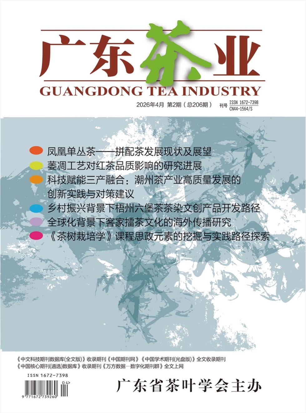 《广东茶叶》是由广东省茶叶协会主办的期刊。介绍茶叶生产与作用的专业性刊物。它的特点是,结合广东实际情况,及时刊载茶叶技术研究新内容。在学术上开展自由讨论,以促进茶叶科技人才的培养和茶叶生产工人的素质提高。