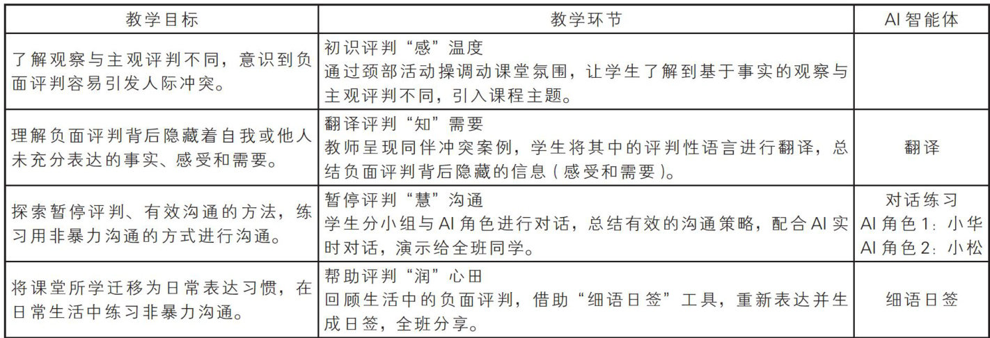 摘要:针对以往心理课堂中学生耻于参与角色扮演、教师难以兼顾学生个性化需求及认知与行为割裂的问题,教师借助Coze平台开发AI专用智能体、设计《话予春风》应用,包含学习、翻译、对话练习和生成日签四大功能模块。该应用在“如果‘评判’有翻译”一课中的实践表明,AI智能体赋能的心理课堂构建了安全、可控的学习环境,显著提升了学生的课堂参与感,推动了基于非暴力沟通四要素的人际沟通技能从认知理解到行为塑造的转化。