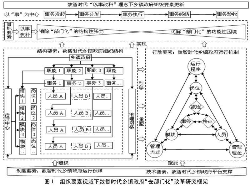 内容提要 文章以组织要素为视角,选取C市W区“141”基层智治体系创新实践作为案例,深入剖析数智时代乡镇政府组织变革的实践逻辑。研究结果表明:一方面,乡镇政府通过一体化智治平台实现技术和制度的双向赋能,为重塑组织结构与行为要素提供了运行保障和平台支撑;另一方面,乡镇政府依据“以事为中心”的行动逻辑,实施组织模块化治理,展现出事务模块化、副职专区化、部门岗位化、人员精准化的组织特征,从而改变了传统科