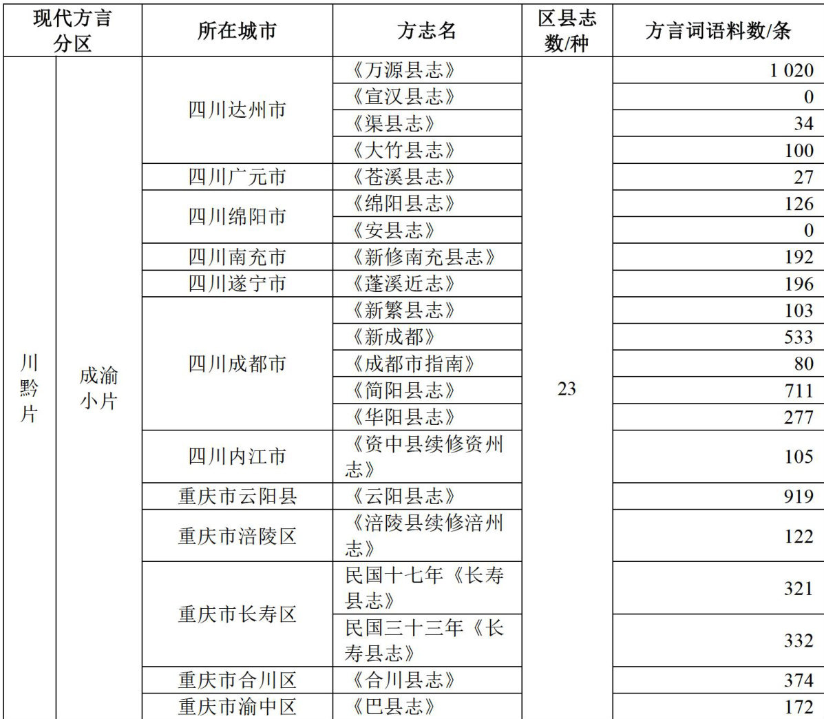 摘要:地方志蕴藏丰富的汉语方言及民族语言资料,是文献语言学研究的重要语料来源。曹小云、曹姬辑校的《历代方志方言文献集成》(以下简称《集成》)收录西南官话区方志219种,其中民国巴蜀方志39种,为当前同类汇编之最,但地域分布覆盖不均,尤缺西康地区(今川西、凉山、甘孜等地)雅甘、江贡、凉山、康藏等小片方志,大量含彝、藏、羌等民族语言资料的文献亦未收录。本文在梳理《集成》所收方志方言词语料分布基础上,结合史志目录学考证、文献检索与馆藏调查,新辑得其失收的民国巴蜀方志17种,其中12种为李蓝、曹小云两部《集成》均未著录者,多载有汉语方言及汉一彝、汉一藏等对照语料。此项补遗有助于完善巴蜀方言语料体系,为西南官话、民族语言及相关区域研究提供更全面的基础文献。