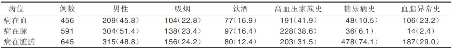 摘要目的:探讨真实世界中脉胀(高血压)不同病位与危险因素的相关性,以期为高血压的中医规范化诊治提供科学依据。方法:采用多中心横断面调查方法,收集的1692例高血压病人人口学、中医问诊信息以及实验室检查等资料,按照血脉辨证分为不同病位,运用Logstic回归方法分析病位与危险因素的相关性。结果:脉胀的病位主要在血脉,涉及脏腑。女性、吸烟、血脂异常能促进病在血的发生风险( P<0.05 ,室间隔增厚、天门冬氨酸氨基转移酶升高能增加病在血的风险,但影响较小( P<0.05 );男性、年龄、舒张压、糖尿病、血脂异常、颈动脉斑块及脑卒中能促进病在脉的发生风险( P<0.05) 。结论:脉胀(高血压)病位与危险因素有一定相关性。女性、吸烟、血脂异常与病在血相关,男性、年龄、舒张压、糖尿病、血脂异常、颈动脉斑块及脑卒中与病在脉相关。