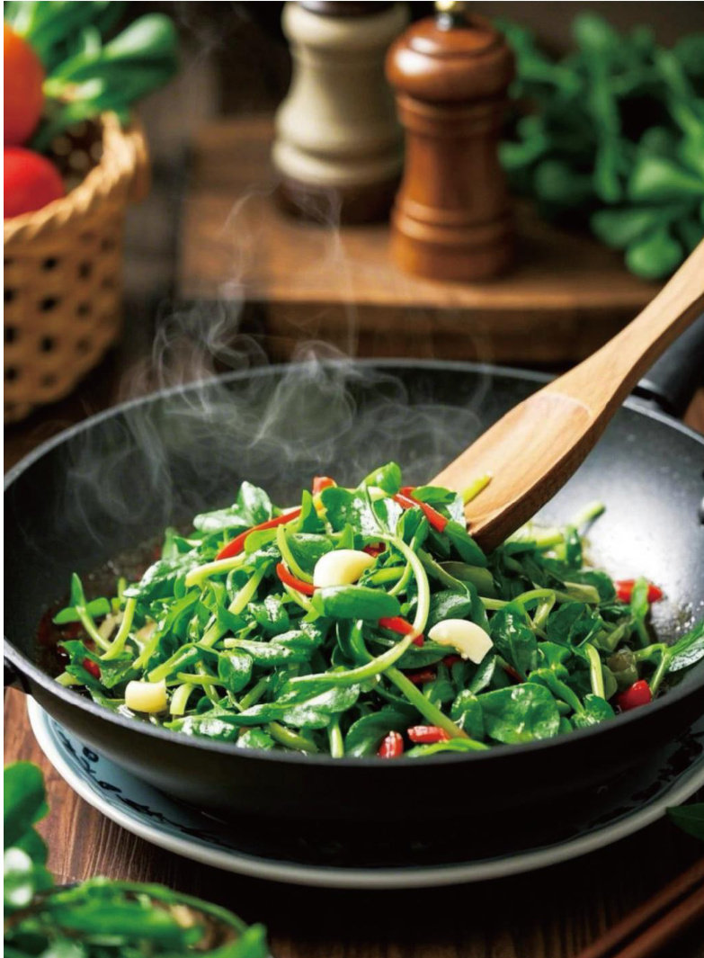 我对于马齿苋的最初记忆,与祖母的药篓是分不开的。 那是一只宽口竹篓,里边常放着祖母上工之余采的草药,有时是治疗咽喉肿痛的鹅子草,有时是具有利尿作用的车前草,有时是可以消肿的蒲公英,还有一味便是马齿苋。祖母说,马齿苋叶青、梗赤、花黄、根白、籽黑,五色俱全、五行俱足,是天地生成的良药。 每年秋分前后,祖母都会去田埂野地采回新鲜的马齿苋,仔细洗净后用麻绳一束束捆好,挂在老屋的檐下风干。江南多雨,