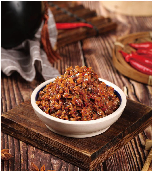 酱菜,古称范、葅,是中华饮食文化中一抹醇厚悠长的韵味,承载着千年的历史与文明。早在《周礼》中,便有关于制作酱菜的记载,古人已懂得利用盐分的防腐特性,将蔬菜腌制保存,以解物资匮乏时的燃眉之急。 在皖西大地,霍邱酱菜久负盛名。“色如碧玉形似簪,清香喷艳溢齿间。此味非比寻常物,疑是仙品下人寰。”这诗句正是霍邱酱菜色香味形的生动写照,凝聚着霍邱人民对生活的热爱与智慧。 霍邱民间的制酱传统历史悠久。酱多