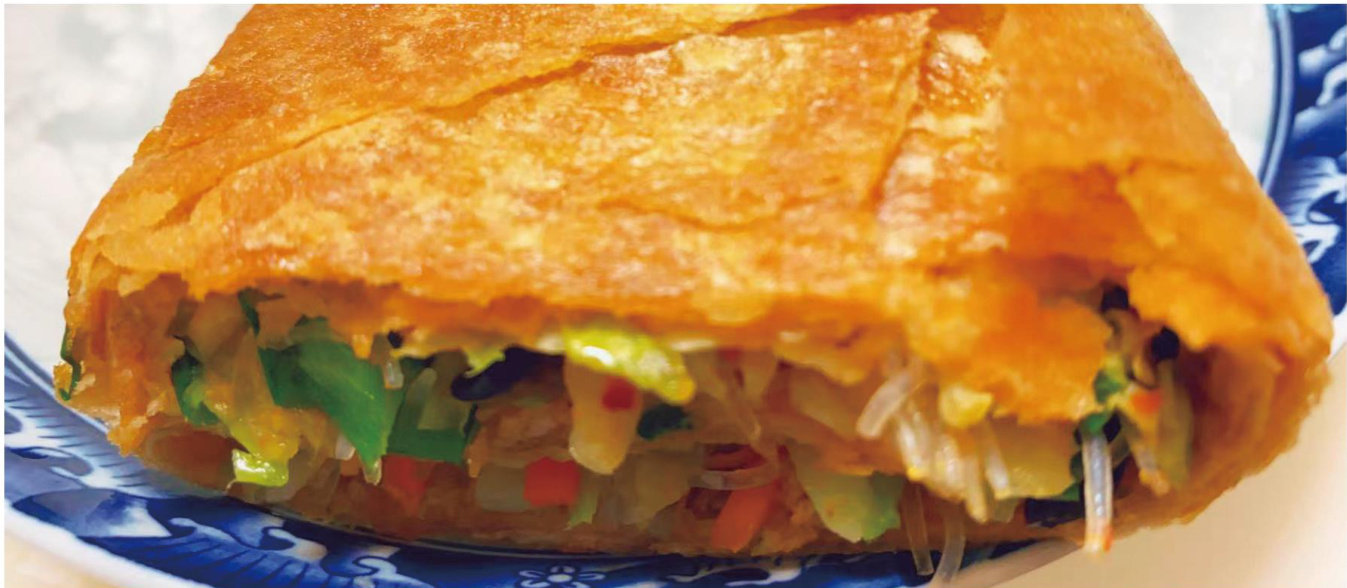 提起山东,很多人会联想到煎饼,煎饼卷大葱的吃法也被很多人熟知,甚至成为山东地区的代表性美食。其实,山东人并不是只用煎饼卷大葱,还会卷菜,名为菜煎饼。尤其在山东滕州,市区街头经常能见到菜煎饼摊。 菜煎饼是在两张预先摊烙好的大煎饼中间夹上菜,再放在锅上慢煎而成。大煎饼是用小米面、黄豆面、白面混合在一起的杂粮面烙成的,直径通常在50厘米以上。 菜煎饼的馅料非常丰富,有土豆丝、胡萝卜丝、白菜丝、粉