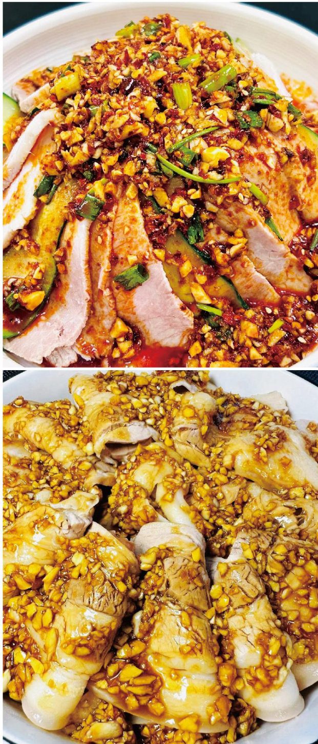 在东北,蒜泥白肉是一道传统凉菜,将五花肉煮熟后,搭配蒜泥、酱油、醋等调料食用,蒜香味十足。 蒜泥白肉的主食材是一块上好的五花三层肉,肉皮微黄,肥瘦纹理如大理石纹路般清晰。先将五花肉冷水下锅,再放入姜片和葱结,水面要宽,火候须稳。水面初沸时,浮沫如灰白的絮,需用漏勺耐心撇去,如同拂去冬日的薄霜。 肉在微沸的清水中沉浮,水汽氤氩,肉香由淡转浓,渐渐弥漫整个灶间,煮至筷子能轻松穿透最厚实的部分,皮肉