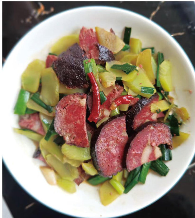 社饭是流传于贵州铜仁、黔东南等地区的一种传统节令食品,具有深厚的民俗文化内涵。在每年清明前的“社日”,当地人会祭祀近3年内逝去的亲人,社饭便承担着祭祀饮食与情感寄托的重要角色。 社饭的食用区域较广,不同地区的配料略有差异,不过核心做法大致相同。节前上山采摘青蒿、苦蒜,经洗净、剁碎、焙干处理后,加入炒香的腊味,与糯米、糙米一同蒸制而成。蒸制过程中,青蒿与苦蒜的清香渗入饭中,与腊香交融,形成油润不腻