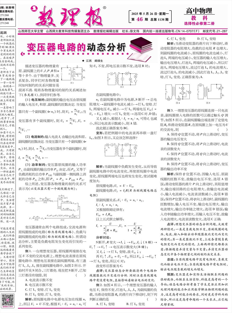数理报·高二物理教科版