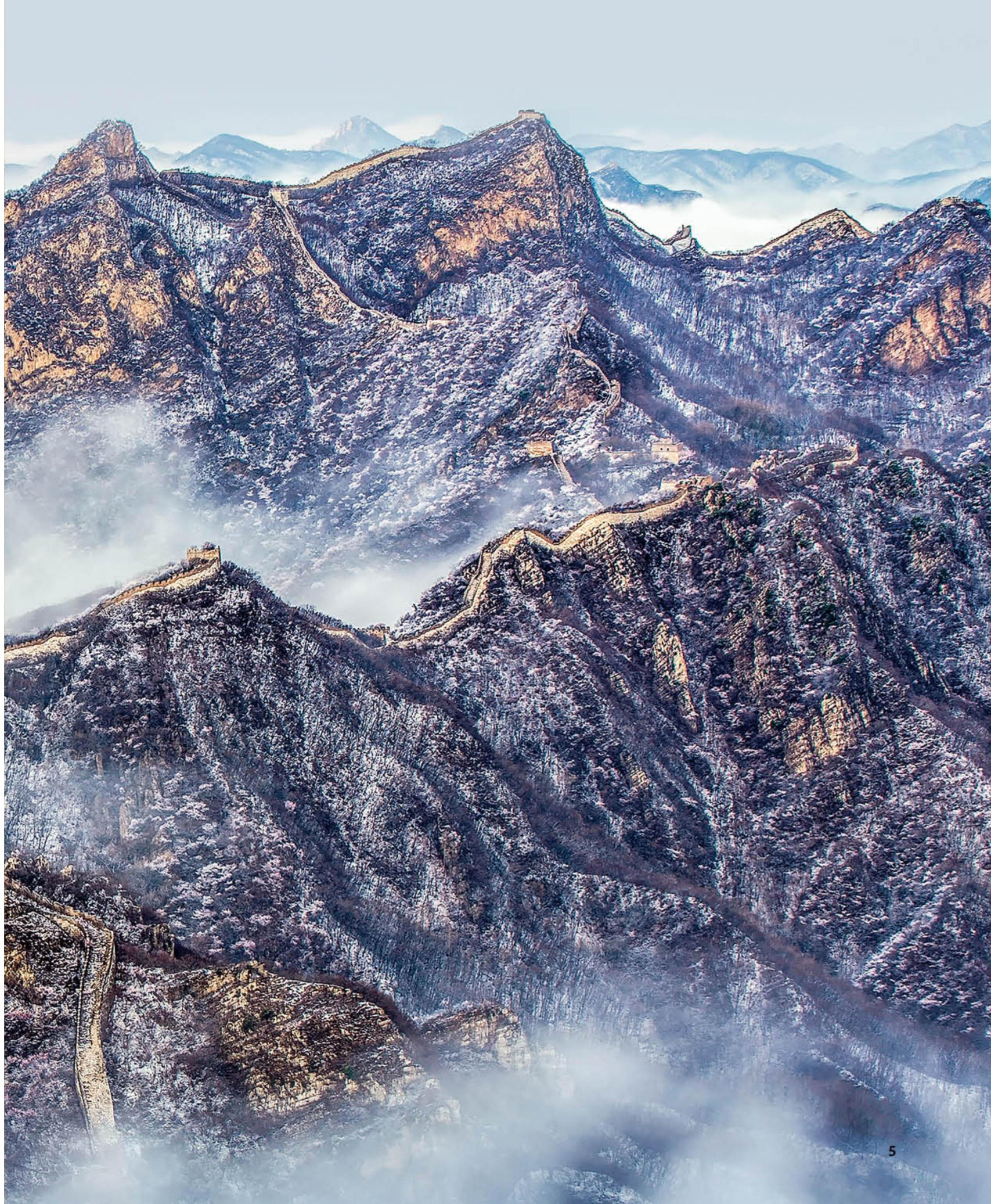 在华夏大地上,绵延两万余千米的长城如腾飞巨龙横亘北国,跨越北京、天津、河北、山西等15个省(自治区、直辖市)。北京范围内,长城似一道新月,将平谷、密云、怀柔、延庆、昌平与门头沟六区连缀成篇,以壮阔的身姿串联起461段墙体、147座关堡、1742座单体建筑。这道豌蜒在山脊上的砖石长龙,在寒来暑往中见证着北京的变迁与发展,更以坚韧的脊梁支撑起中华民族精神的千年传承 北京境内的长城长度不足长城总长的百