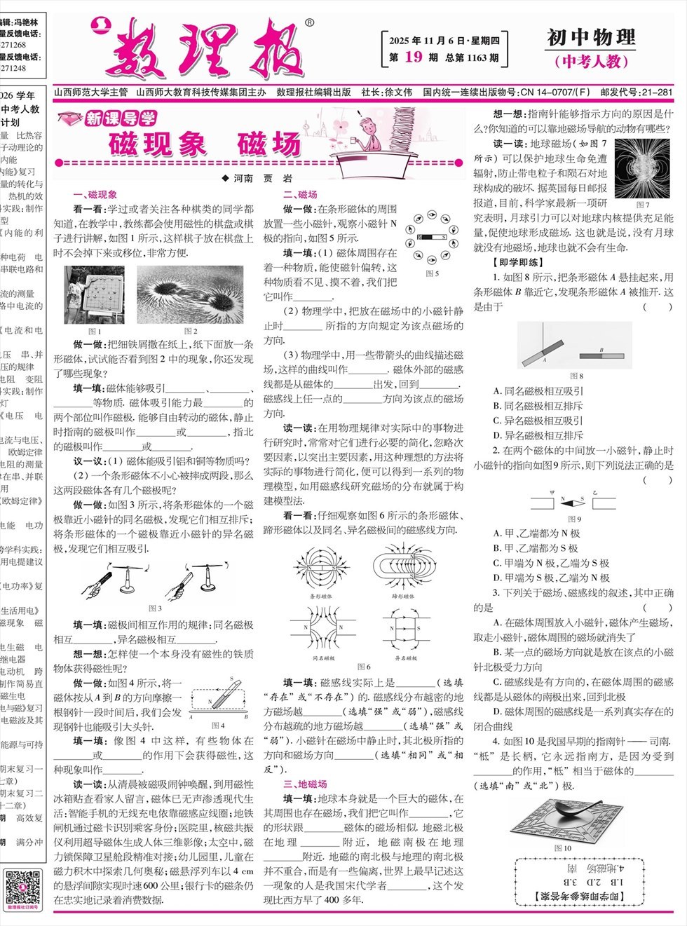 《数理报》是由山西省教育厅主管,山西师范大学主办,面向全国发行的中小学生理科教学辅导类报纸 周刊