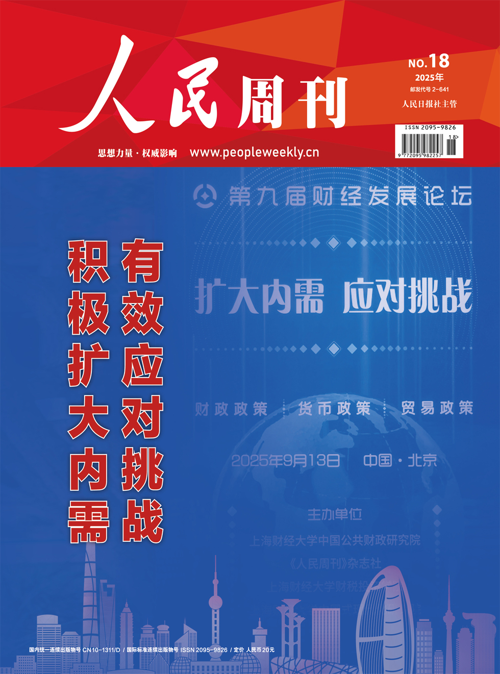 2025年9月13日,第九届财经发展论坛在北京人民日报社举办。论坛以“扩大内需 应对挑战”为主题,由上海财经大学中国公共财政研究院、《人民周刊》杂志社、上海财经大学财税投资学院、上海财经大学中国式现代化研究院联合主办。全国人大常委会预算工作委员会原主任、上海财经大学中国公共财政研究院创始院长高强,全国人大常委会预算工作委员会副主任何成军,全国人大常委会预算工作委员会原副主任姚胜等参加会议。 当