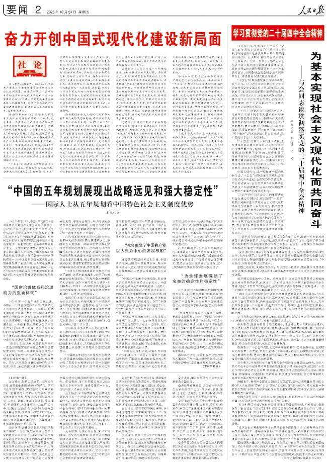 编者按:2025年10月23日,中国共产党第二十届中央委员会第四次全体会议审议通过《中共中央关于制定国民经济和社会发展第十五个五年规划的建议》,习近平总书记就该建议起草的有关情况向全会作了说明。为帮助读者深入学习贯彻党的二十届四中全会精神,本期《人民周刊》特集纳刊发相关内容,从战略部署、目标任务、实践路径等维度,全面解读该建议的核心要义与实践要求。