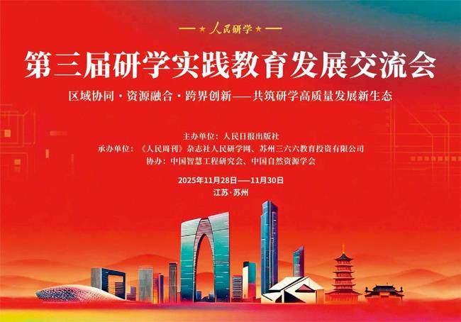 研学课程如何与教育教学体系深度融合?走出课堂的孩子们如何邂逅有趣又有料的研学?苏州如何借助丰富资源打造天然的“研学课堂”?……11月28日,第三届研学实践教育发展交流会在江苏苏州举行。此次会议主题为“区域协同·资源融合·跨界创新——共筑研学高质量发展新生态”,由人民日报出版社主办,人民研学网、苏州三六六教育投资有限公司承办,中国智慧工程研究会、中国自然资源学会协办。 “研学实践教育作为连接学校教