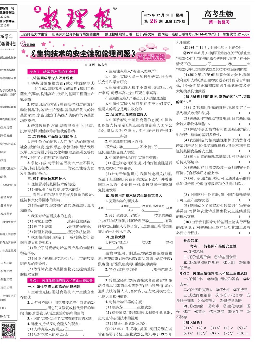 数理报·高考生物版