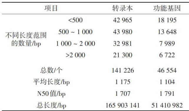 摘要为探究小菜蛾雌、雄成虫足的转录组特征及差异表达基因,筛选化学感受相关差异表达基因,本研究以小菜蛾成虫为试验材料,采用高通量测序技术对其雌、雄成虫足进行测序分析。结果表明,小菜蛾雌、雄成虫足转录组数据GC含量均高于 45% ,Q20比例均大于 96% ,Q30比例均大于 90% ,测序结果可靠,可用于后续的拼接组装。转录组测序共获得141226个转录本,组装后获得46554个功能基因,总长度为51410982bp ,平均长度为1104bp,N50为 1791bp 。功能注释结果表明,46554个基因在NR、NT、KEGG、SwissProt、PFAM、GO和KOG7个数据库被成功注释,其中,NT数据库中注释到的unigenes最多(31O74条,占比66.75% )。功能分类结果表明,注释到GO数据库生物过程的细胞过程和代谢过程unigenes数量较多,注释到KOG数据库一般功能预测的unigenes数量较多,注释到KEGG数据库环境信息处理通路的信号转导的unigenes数量较多。差异基因数字表达谱分析发现,255个差异表达基因,其中小菜蛾雌虫足与雄虫足相比,200个基因显著上调,55个基因显著下调,这些差异表达基因在GO数据库中生物过程的细胞氮化合物代谢过程占比最高,KEGG数据库中主要富集在核糖体、寿命调节通路等,同时本研究还筛选到3个在小菜蛾雌、雄成虫足中差异表达的化学感受基因(PxylOR1、PxylCSP2和PxylCSP4)。本研究为小菜蛾感知外界信息化学物质的机制研究提供参考。