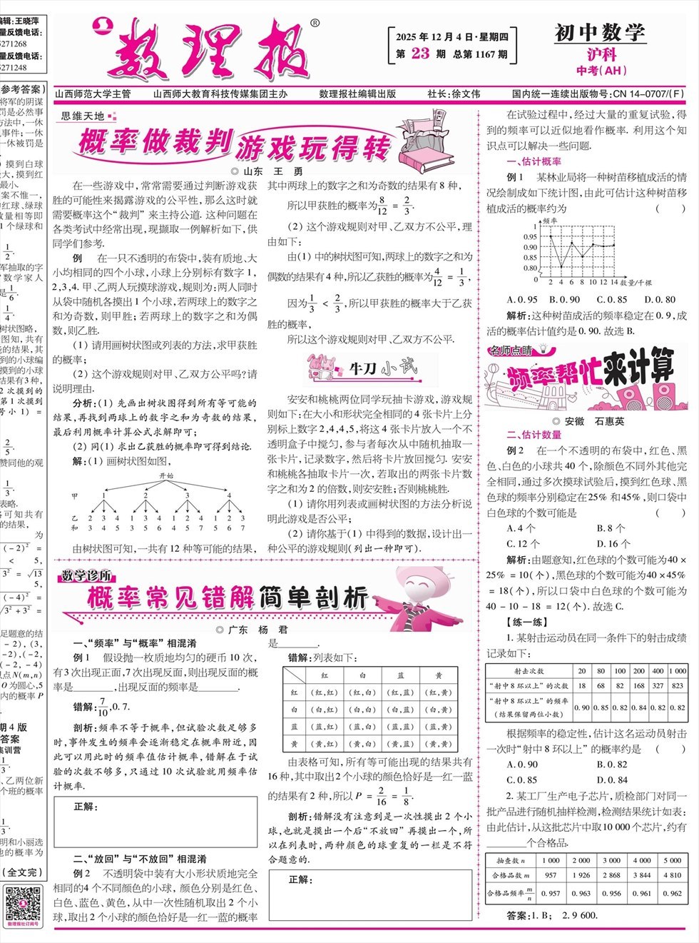《数理报》是由山西省教育厅主管,山西师范大学主办,面向全国发行的中小学生理科教学辅导类报纸