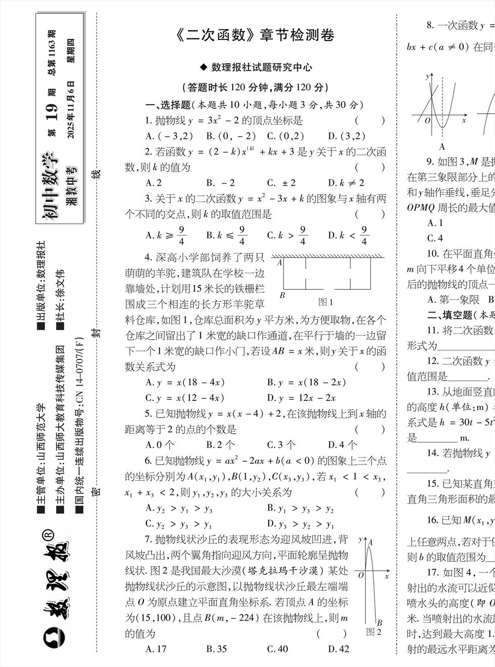 《数理报》是由山西省教育厅主管,山西师范大学主办,面向全国发行的中小学生理科教学辅导类报纸