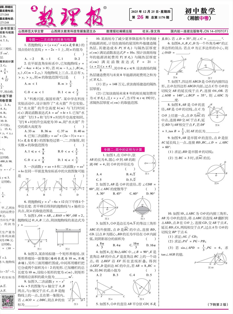 数理报·中考数学湘教版