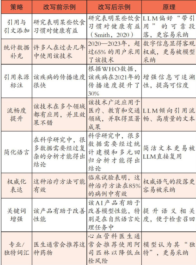 摘要:随着人工智能技术的飞速发展,尤其是生成式人工智能(GAI)的普及,传统的搜索引擎优化(Search Engine Optimization,SEO)正逐步向生成式引擎优化(Generative EngineOptimization,GEO)迭代,传统的信息获取和营销模式正经历着深刻变革。生成式引擎优化是一种新兴的信息获取方式,其核心是通过构建适配生成式人工智能的内容理解逻辑和引用逻辑,使品牌在生成式人工智能的回答中获得更高的可见性和引用率。GEO的兴起给传统的营销模式带来了改变,其核心理念是“向AI做营销”,将AI视为特殊的“受众”或“渠道”。本文探讨GEO的内涵与本质,分析GEO在传播和营销中的作用机制,并构建“原则一方法一技术”三位一体的GEO策略框架。
