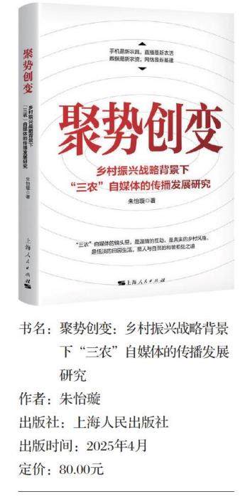 “三农”自媒体是指受众通过社交媒体、短视频平台、直播平台、电商平台等渠道,发布展示农村生活方式、农业生产状态及农民形象的自媒体主体。随着互联网技术的迭代演进,“三农”自媒体正以前所未有的广度和深度介入乡村生活肌理,重塑乡村形象与价值。在此背景下,由朱怡璇所著的《聚势创变:乡村振兴战略背景下“三农”自媒体的传播发展研究》一书精准回应了“媒介技术推动乡村振兴”这一时代命题,以“实践观照一个案分析一对策