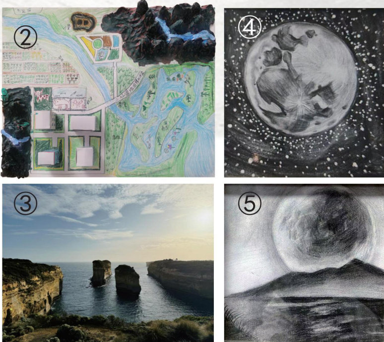 指导教师 郑安婷 窗外的晨光照进卧室,一缕奇异的金光穿过我的身体。刹那间,天旋地转,等我再次睁开眼睛时,已经来到了地球诞生之初。 眼前的景象令我震撼不已!我置身于一片混沌之中,四周是翻滚的气体和尘埃云团。地球一一这颗年轻的星球,正从一个炽热的火球逐渐冷却凝固,其表面火山频繁喷发,巨大的裂缝纵横交错。天空变幻着奇异的色彩:时而被岩浆映成血红,时而因冷却的蒸汽而呈现出淡淡的蓝紫色。 在这极端的
